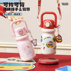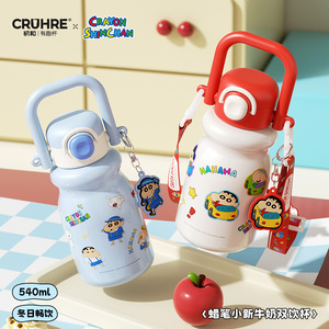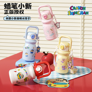 可爱蜡笔小新牛奶一杯双饮儿童保温杯吸管杯绳便携不锈钢水杯316