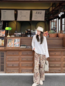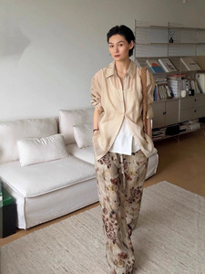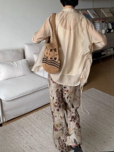 【不退不换】UMA 中式美学印花垂感抽绳天丝亚麻阔腿裤