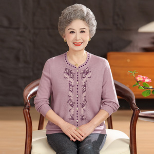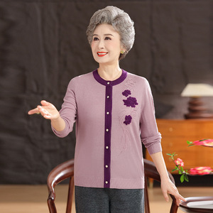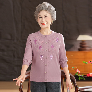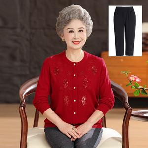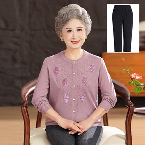 春秋装针织开衫中老年人妈妈装毛衣外套60岁70老人奶奶衣服女上衣