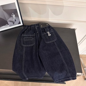 儿童水洗牛仔裤2025春秋款儿童韩版休闲中小童宽松明线牛仔裤跨境