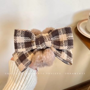 4#咖色蝴蝶结珍珠毛球-底夹11cm