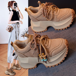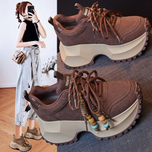 时尚增高老爹鞋女2025秋冬新款真皮厚底牛反绒系带运动百搭休闲鞋