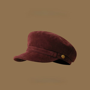 四季款复古海军风帽子高级感麂皮绒平顶报童帽女生韩系百搭画家帽