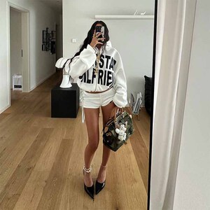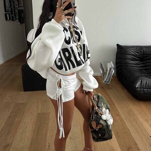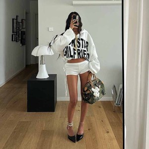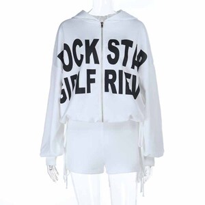 欧美风字母印花拉链连帽卫衣外套短裤套装 ins秋季2025新款套装女