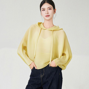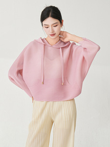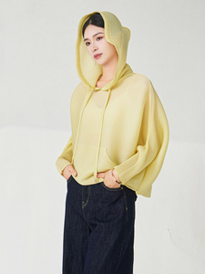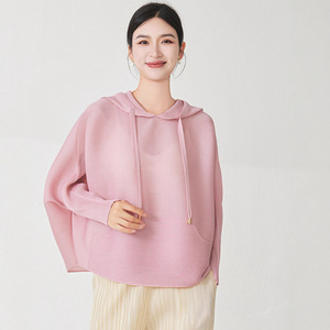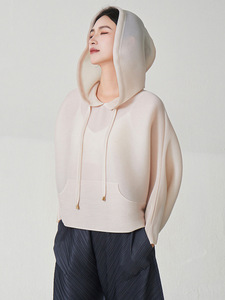 专柜同款褶皱卫衣上衣女秋季新款宽松显瘦大码连帽套头外套设计感