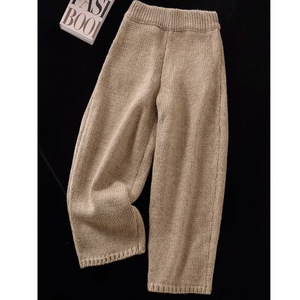 外贸订单欧货羊毛针织裤子秋冬加厚棒针粗线休闲运动毛线圈卫裤女
