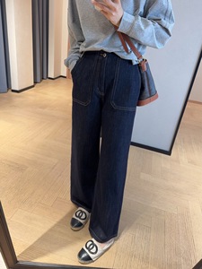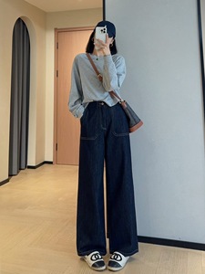 朵妮DN 神仙长裤天丝棉立体明线高腰显瘦直筒阔腿牛仔裤女2025秋