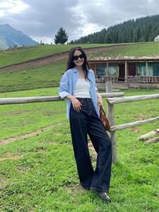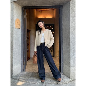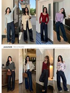 pusumede 复古阔腿牛仔裤女春秋宽松显瘦垂感直筒裤拖地裤长裤子