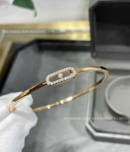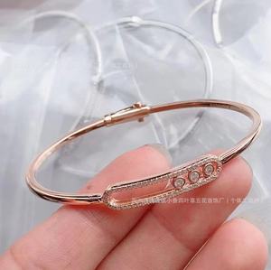欧美跨境v金三钻灵动镶钻手镯女厚镀18k玫瑰金设计高级感百搭手环