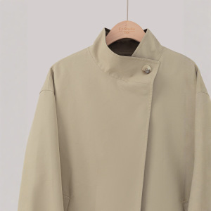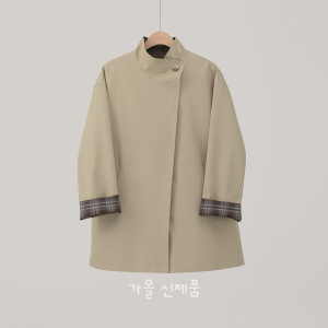 【济州岛长假】法儿家 初秋休闲格纹撞色风衣2025新款卡其色外套