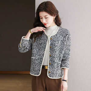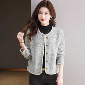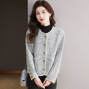 高级感小香风针织短款外套2025秋冬新款金属扣时尚圆领开衫上衣潮