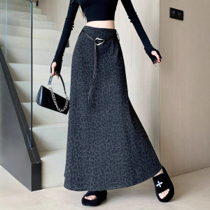 高腰遮跨显瘦豹纹长裙配皮带女2025秋季新款韩版辣妹包臀半身裙子