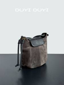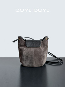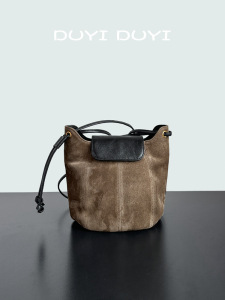 2025小众设计新款女包真皮水桶包复古磨砂皮百搭单肩包斜挎包小包