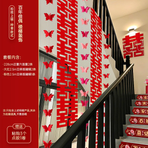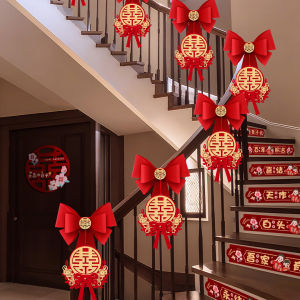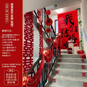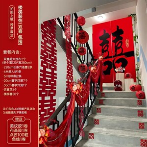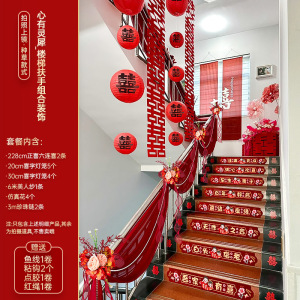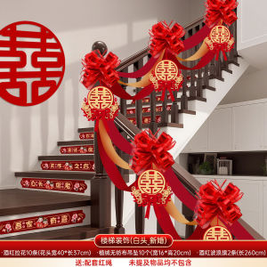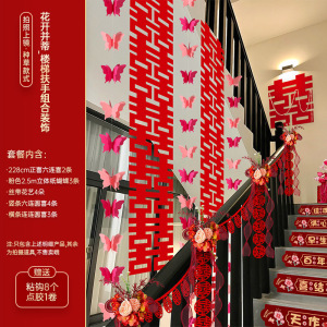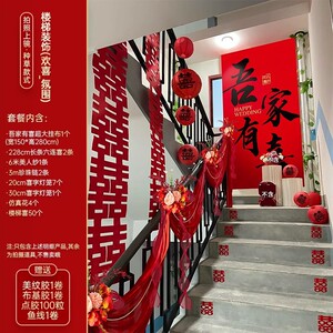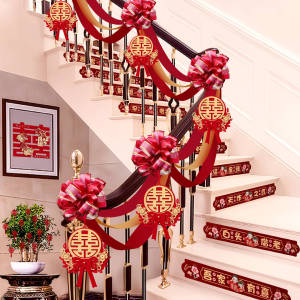 婚房布置套装结婚楼梯扶手装饰农村自建房婚礼男女方新房彩带拉花