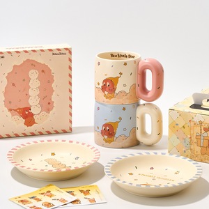 SAFO星星人杯子马克杯碟盘子餐具陶瓷水杯情侣男女生日礼物二人食
