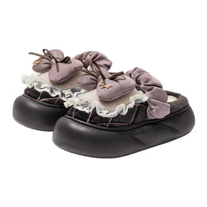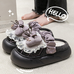 可爱蝴蝶结棉拖鞋女2025新款冬季外穿加绒保暖防水防滑毛毛棉拖鞋