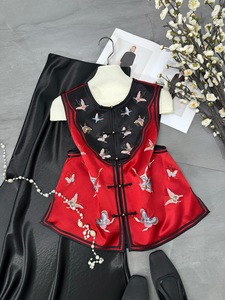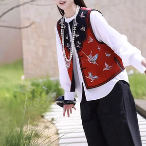 篙端桑蚕丝新中式蝴蝶重工绣花盘扣马甲2025秋款时尚减龄坎肩上衣