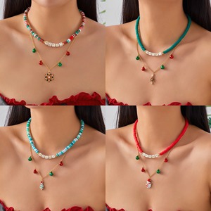 欧美跨境圣诞节多层圣诞老人铃铛项链 软陶雪人雪花铭牌吊坠批发