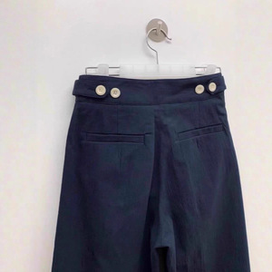 韩系穿搭藏蓝色西装裤女秋季高级设计感小众高腰遮跨显瘦直筒裤子
