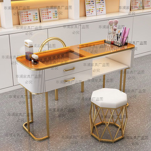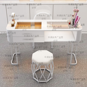 奶油风美甲桌白色日式玻璃单人全套轻奢简约美甲台收纳折叠美甲桌