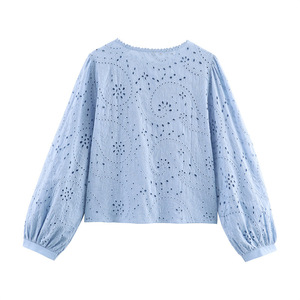 外贸2025秋季新款欧美风女装时尚休闲宽松镂空短刺绣衬衫8741231