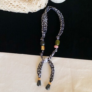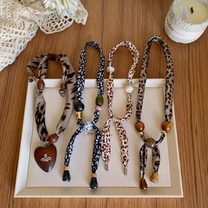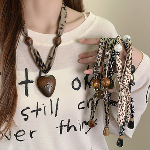 美拉德豹纹印花丝巾项链女2025新款爆款个性毛衣链小众设计感配饰