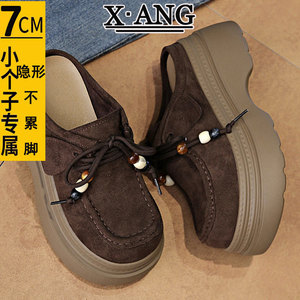 真皮勃肯鞋松糕厚底增高7cm小个子女鞋外穿包头半拖鞋一脚蹬单鞋