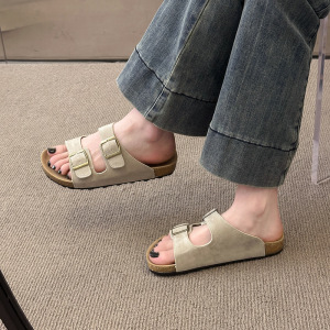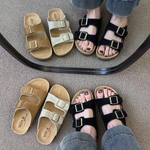 厚底凉拖鞋女外穿2025夏季新款复古一字拖勃肯鞋沙滩休闲平底凉鞋