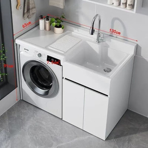 Kxh阳台洗衣机柜一体台盆高低搓板滚筒洗衣机组合蜂窝伴侣池台现