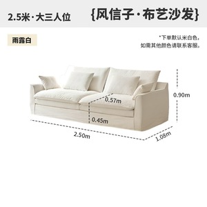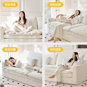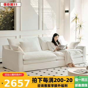 冬熊 法式奶油风客厅小户型现代简约侘寂风全可拆洗亚麻布艺沙发
