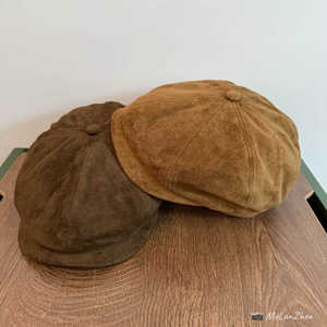 日系复古高品质麂皮绒报童帽子男女秋冬英伦风大版型显脸小八角帽