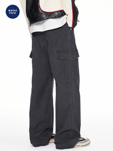 沐丘男装∣美式复古做旧水洗老钱风工装裤男士宽松直筒阔腿休闲裤