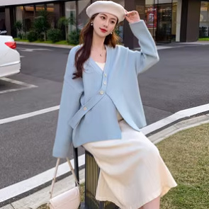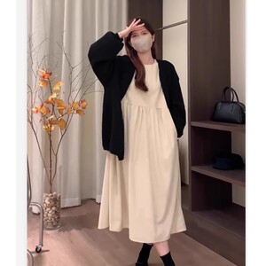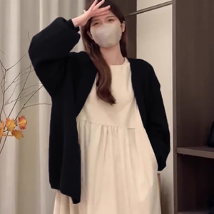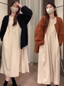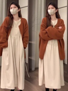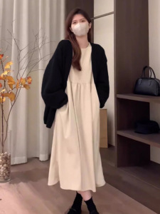 黑色针织外套+杏色灯芯绒连衣裙 高品质版 Jtz152372 厚度质感升级