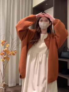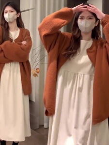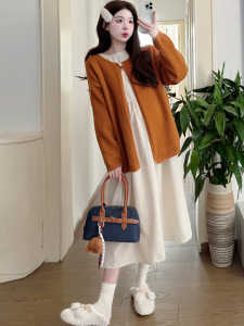 橘色针织外套+杏色灯芯绒连衣裙 高品质版 Jtz152372 厚度质感升级