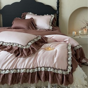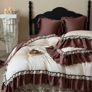法式复古风床盖款天丝棉四件套镂空蕾丝花边床上用品被套轻奢床品