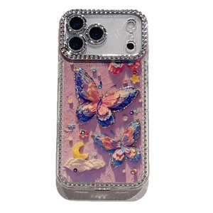 彩色蝴蝶适用iPhone17promax手机壳16pro水钻星星蓝光14/13全包女
