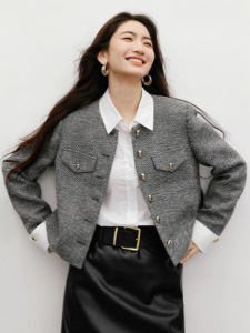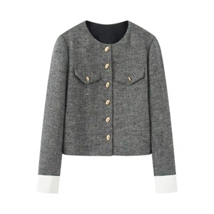 袖家独特漂亮的短外套2025秋季新款女装小香风粗花呢撞色正肩夹克