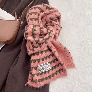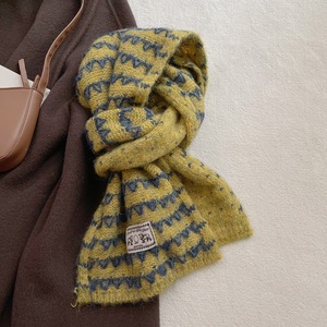 简约小香风混色条纹围巾女冬季韩版百搭加厚保暖学生情侣护颈围脖