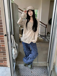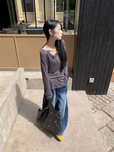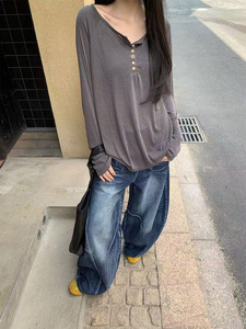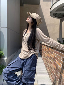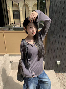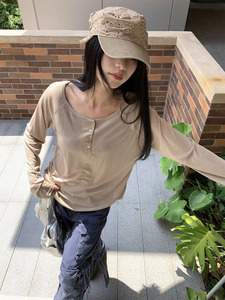 [9hour]辣妹风斜肩长袖针织衫女 2025秋冬个性纽扣上衣女c250752
