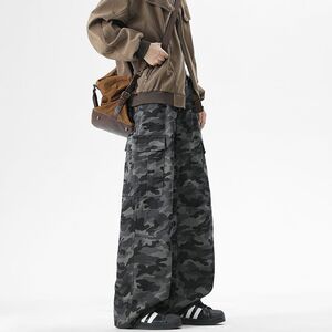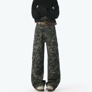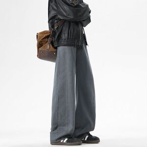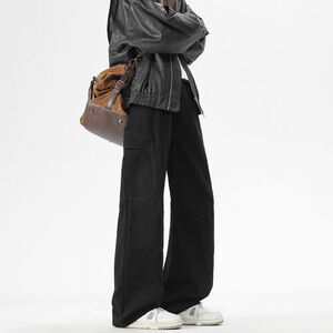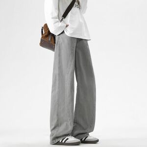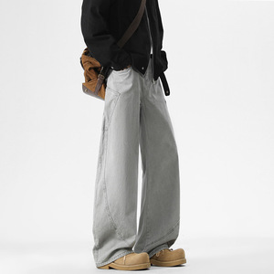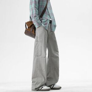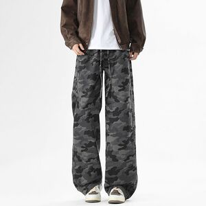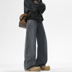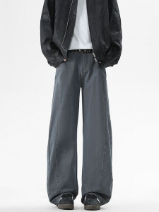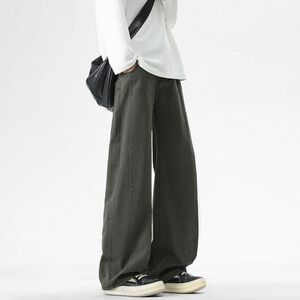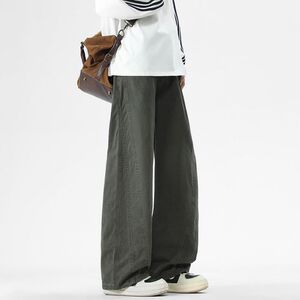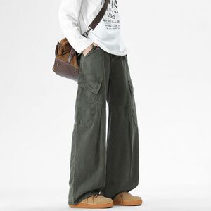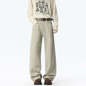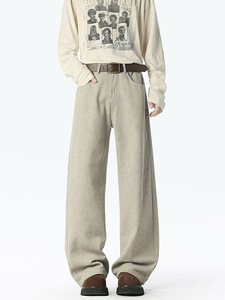爆款男装 /秋冬新款休闲裤纯棉半橡筋纽扣皮带款美式高街拖地长裤