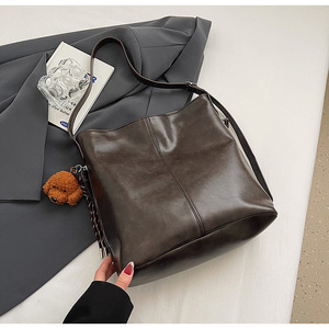 2025秋冬新款复古通勤大容量包包女简约休闲水桶包小众时尚单肩包