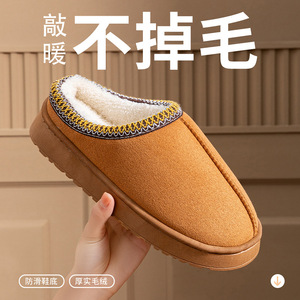 2025年新款麂皮绒棉拖鞋女秋冬室内居家用厚底网红爆款毛毛棉拖鞋