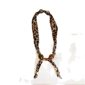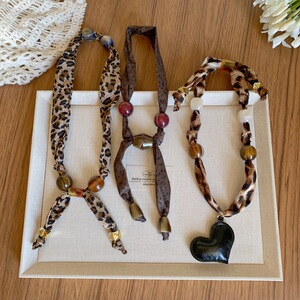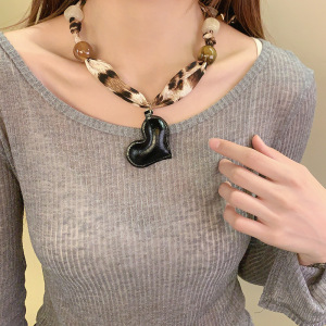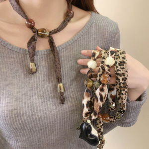 美拉德咖色豹纹串珠丝巾项链女复古小众设计感可调节毛衣链配饰品