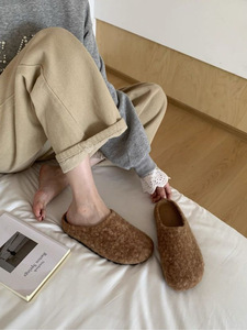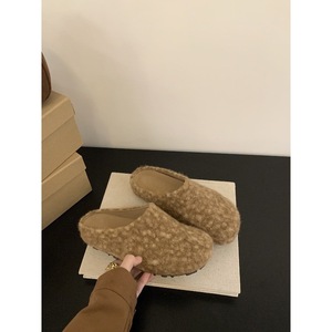 勃肯拖鞋女外穿2025年秋冬新款厚底羊卷毛包头懒人鞋毛毛鞋