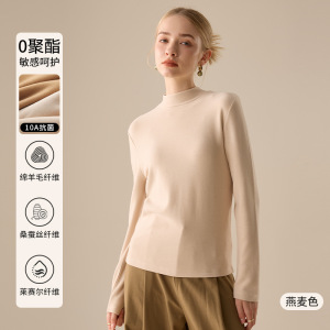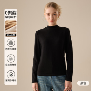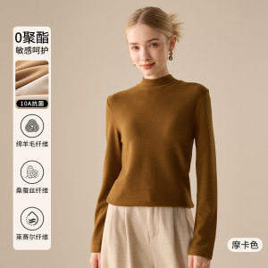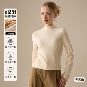 莱赛尔德绒羊毛打底衫女秋冬新款半高领加绒加厚蚕丝保暖长袖上衣