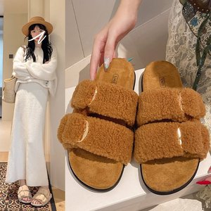 厚底毛毛拖鞋女外穿2025新款秋冬季时尚一字不累脚毛绒棉拖毛毛鞋