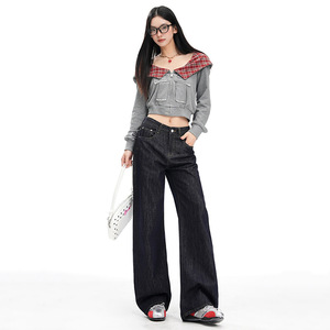防掉色筒染工艺 秋季新款软牛仔裤女秋季季新款高腰宽松直筒裤子