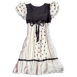 2025年夏季新款波点甜美风蝴蝶结装饰A字型圆领连衣裙女