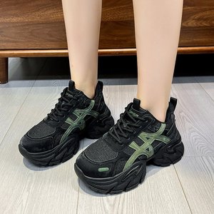 复古厚底老爹鞋女款2025年秋季新款网面透气休闲鞋小个子增高女鞋