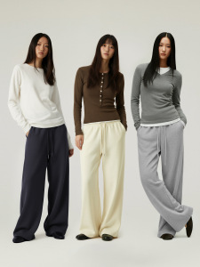 捷展女装|莱赛尔空气层香蕉裤25秋季新品松弛感中腰阔腿女装长裤